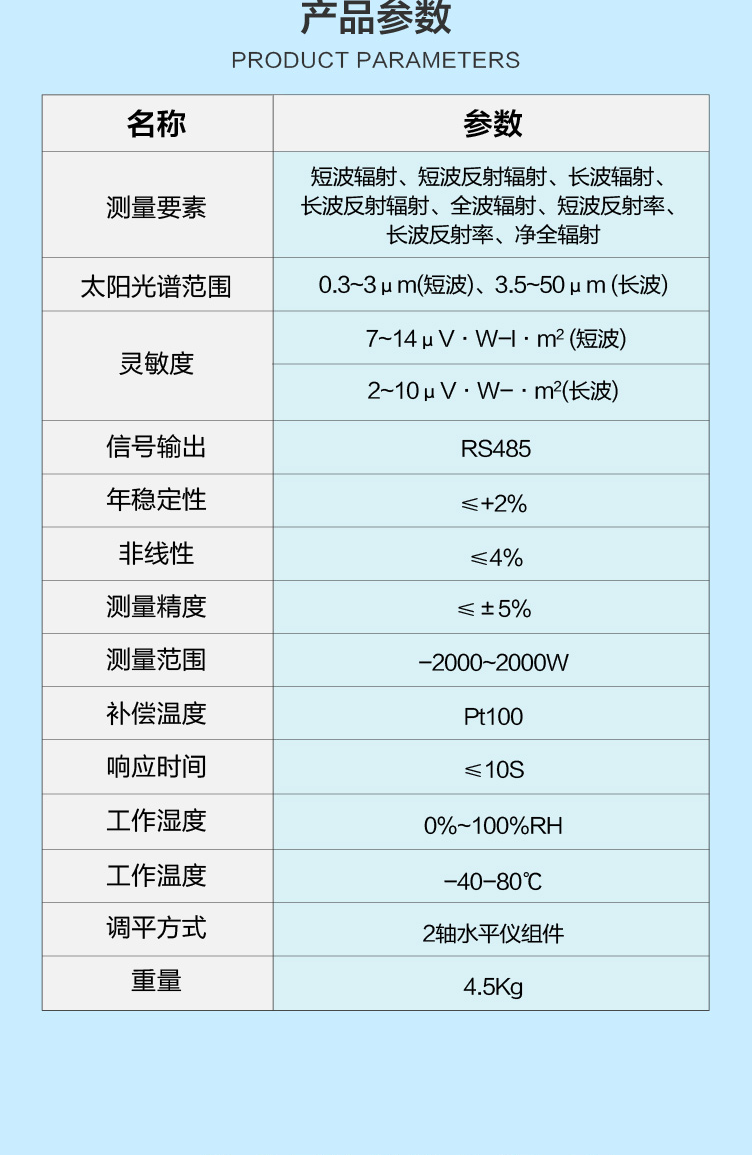 TBB-2L 四分量凈全輻射傳感器是一款高精度、多功能的測量設(shè)備,能夠同時監(jiān)測四個不同的物理量。其設(shè)計精巧,采用先進的信號處理技術(shù),確保數(shù)據(jù)準確性和穩(wěn)定性。這款傳感器都能以出色的性能提供精準讀數(shù),為各種應(yīng)用場景提供強大的數(shù)據(jù)支持。