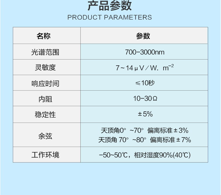 TBQ-JHW型近紅外輻射傳感器主要測量光伏范圍在700-3000nm之間的輻射值。其特點在于高精度測量、快速響應(yīng)以及出色的穩(wěn)定性,能夠精確捕捉并測量近紅外輻射的強度,為用戶提供準(zhǔn)確可靠的數(shù)據(jù)支持。該產(chǎn)品適用于多種領(lǐng)域,包括氣象觀測、環(huán)境監(jiān)測、工業(yè)過程控制等,幫助用戶實時監(jiān)測和分析近紅外輻射的變化,為科研、生產(chǎn)及決策提供有力依據(jù)。