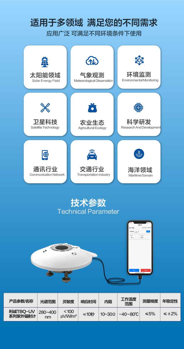 手持紫外輻射計(jì)是一款便攜式高精度測量設(shè)備,專為快速檢測并量化紫外線(UV)輻射強(qiáng)度而設(shè)計(jì)。它廣泛應(yīng)用于環(huán)境監(jiān)測、紫外線消毒效果評(píng)估、戶外工作者健康保護(hù)、科研實(shí)驗(yàn)以及皮膚保護(hù)產(chǎn)品測試等多個(gè)領(lǐng)域。通過直觀的數(shù)字顯示,用戶可輕松掌握紫外線強(qiáng)度,有效預(yù)防紫外線過量帶來的危害,確保工作與生活環(huán)境的安全與健康。